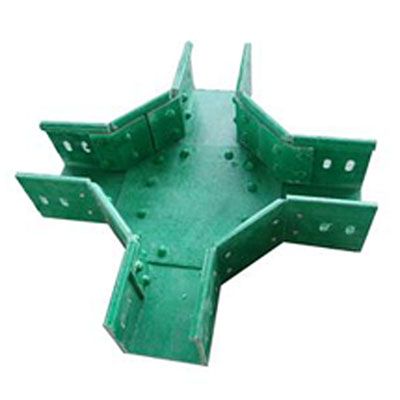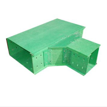 玻璃鋼槽式橋架下垂直三通:玻璃鋼槽式下垂直三通是玻璃鋼槽式電纜橋架在水平方向鋪設時,在水平方向的中途,并不是水平方向的末端,向上分支時的附件。