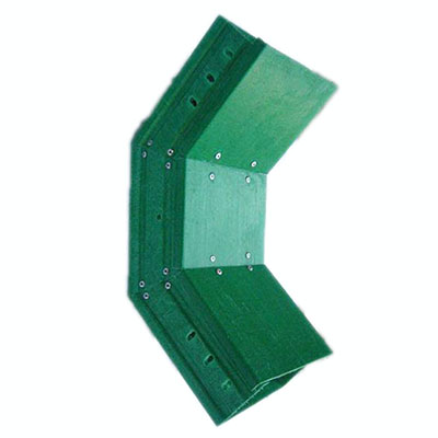 玻璃鋼槽式橋架水平彎通:玻璃鋼槽式水平彎通用于玻璃鋼槽式電纜橋架水平鋪設拐彎時,它的參數、顏色等一般和直段一致,因為有拐彎角度,所以不能在生產線上一次性生產出想要的角度,是先拉出直段玻璃鋼電纜槽后,再二次加工而成。